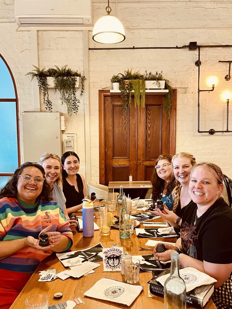 Our Lanterns gathered at Avocados, nestled in the Perth Hills, for a moody and atmospheric discussion of One Dark Window. Blessed with a rainy, overcast day, the setting felt like it had leapt straight from the pages. Perfect for diving into the shadowy world of Elspeth and the Nightmare.